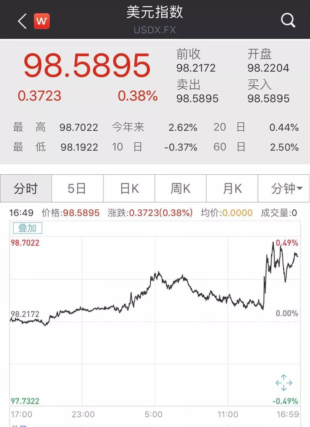 鲍威尔讲话期间,美元指数一度攀升至98.70高点,在美联储决议后一度暴拉40点。
